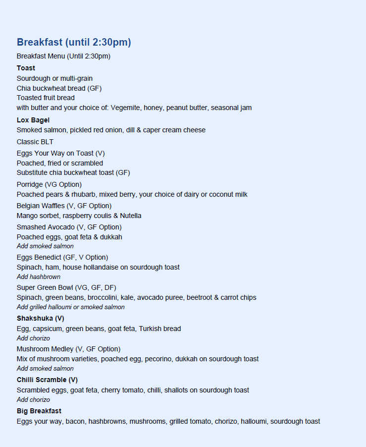 Vegetarian. Two eggs poached, scrambled, fried. + chia buckwheat bread (GF) for an extra charge.